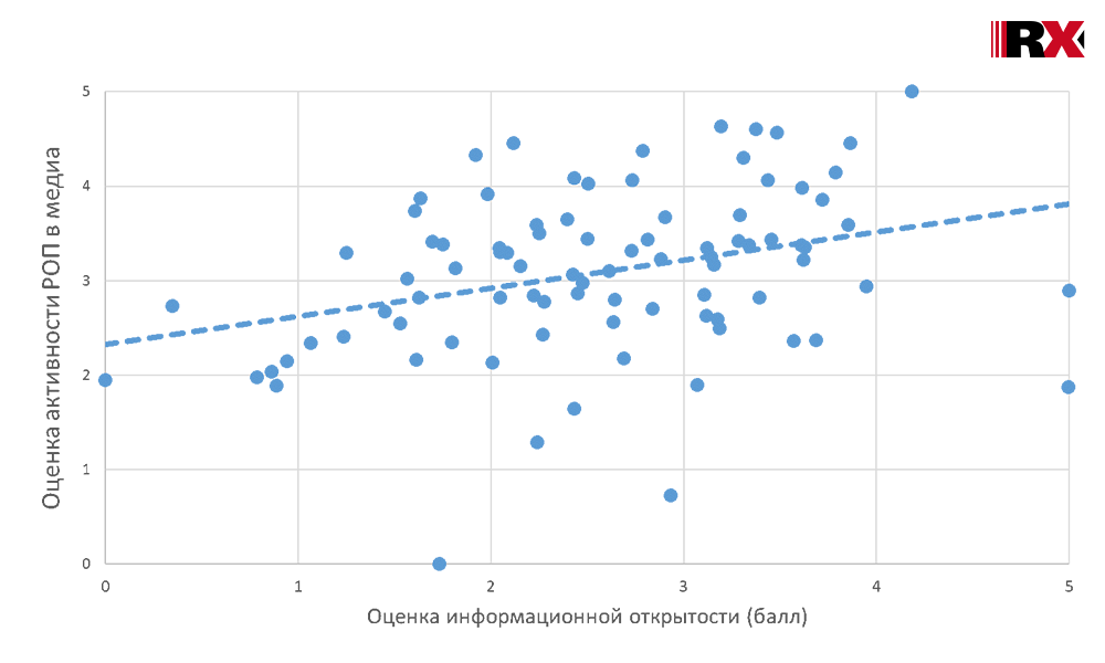 Информационная открытость традиционно способствует росту медиаактивности: большинство региональных общественных палат, имеющих насыщенный и информативный интернет-сайт, одновременно с этим демонстрируют и высокие показатели представленности в медиапространстве.