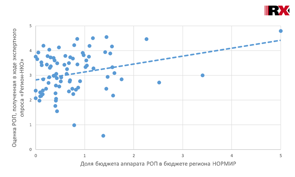 Материальная обеспеченность способствует росту эффективности палаты: бюджет аппарата общественной палаты заметно влияет на то, как экспертное сообщество оценивает вклад такой палаты в развитие некоммерческого сектора региона. Большая ресурсная обеспеченность даёт палатам больше возможностей для реализации своего потенциала: