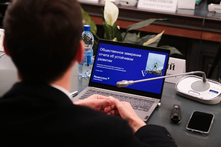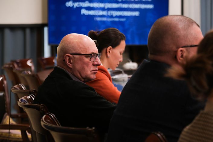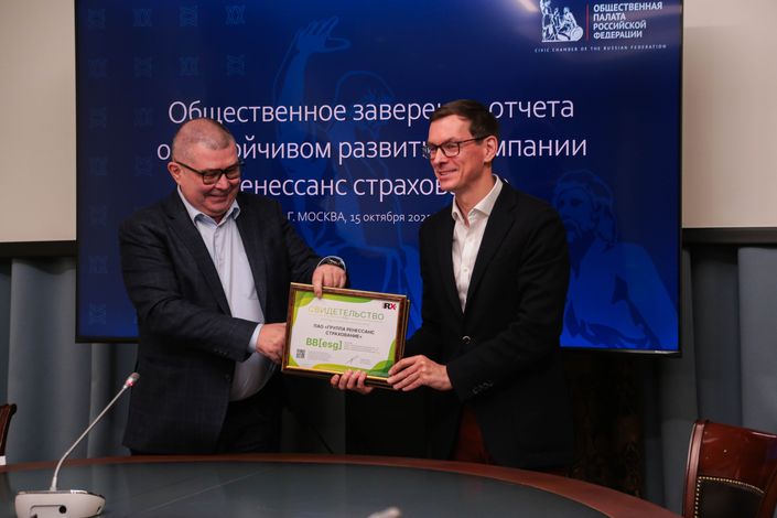 Добрый день, уважаемые коллеги. Елена Акинфовна, Наталья Борисовна, большое спасибо за приглашение. Для нас действительно, правда, это большая честь выступать в этом уважаемом учреждении, Общественной палате Российской Федерации. Мы впервые здесь как спикеры и, надеемся, это станет ежегодной традицией. Серьезно. Вы в своём обращении много важных моментов подсветили. И я сейчас немножко коротко расскажу о компании. Вот. И потом представлю наших приглашенных стейкхолдеров, для того чтобы они дополнили контекст. Но перед этим я хотел большое сказать спасибо, Дмитрий Эдуардович, вам и вам, Мария Алексеевна, за то, что — правда, стечение обстоятельств очень удачное — что вы завершили вашу работу по подготовке обновлённого рейтинга этого года по нашей компании. И это совпало с сегодняшней нашей встречей здесь. И поэтому в этом плане Мария Алексеевна, конечно, хорошо сделала, определённо помогла мне, скажем так, рассказать о нашей компании экспертно со стороны на основе той информации, которая в публичном доступе есть, как мы выглядим. Сразу отмечу, что мы выпускаем отчёт большой, комплексный, содержащий часть нефинансовой отчётности, соответственно, как внутри годового отчёта, отчёт об устойчивом развитии. Второй год, первый год у нас был прошлый. И с учётом рекомендации агентства РАЭКС, мы в прошлом году впервые получили рейтинг, мы уже отчёт этого года доработали. Поэтому действительно для нас крайне важно сегодня прийти сюда, выработать новые приоритеты, посмотреть свежим взглядом на то, что мы можем сделать лучше. Давайте я коротко расскажу про компанию, потому что действительно не всем может быть знакомы. Группа «Ренессанс страхование». Что про нас надо знать? Да, большое спасибо, что вы отметили в вашем вступлении.